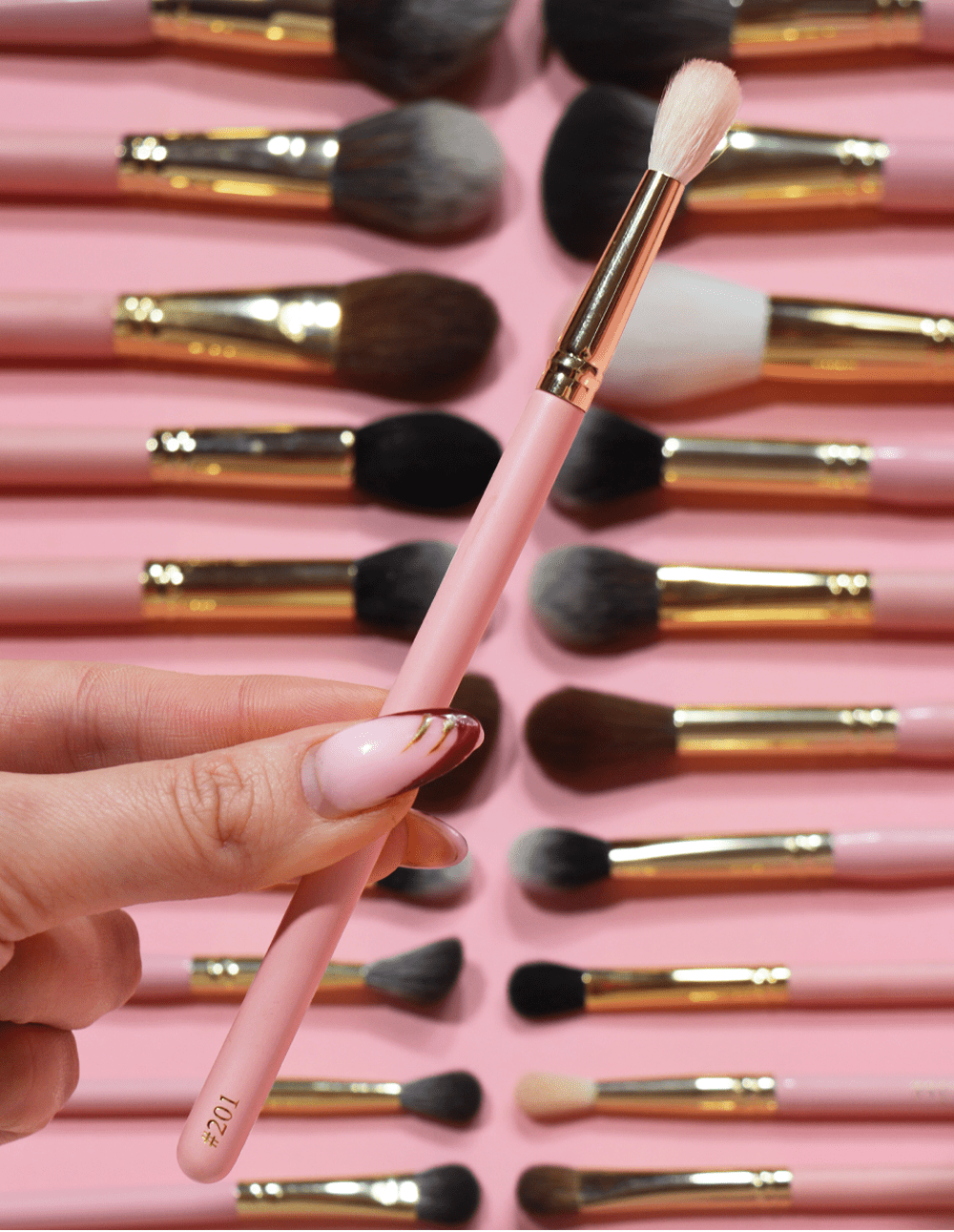 With a chic pink handle and a durable gold ferrule, this brush combines style with comfort and control. Ideal for both everyday looks and dramatic styles, the #201 Blending Brush helps you achieve a flawless, professional finish with ease.