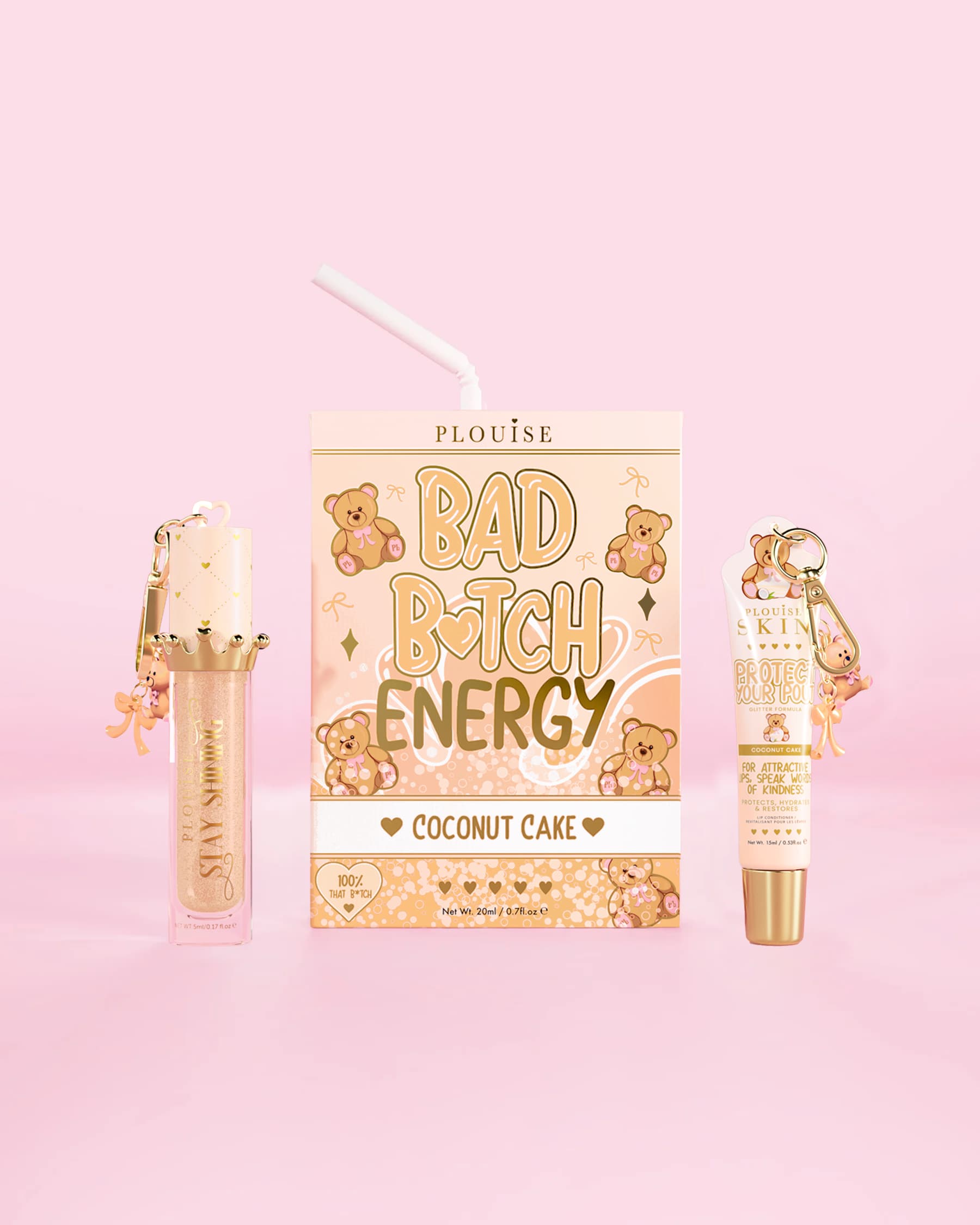 Turn up the shine from root to pout with the P.Louise Teddy Touch Gloss and Glow Set - a plush pairing of glossy lip essentials and crown-worthy hair care from the iconic Teddy Touch collection. Designed for those who love soft glam with main-character energy, this set delivers hydration, shine, and Coconut Cake sweetness in every step.