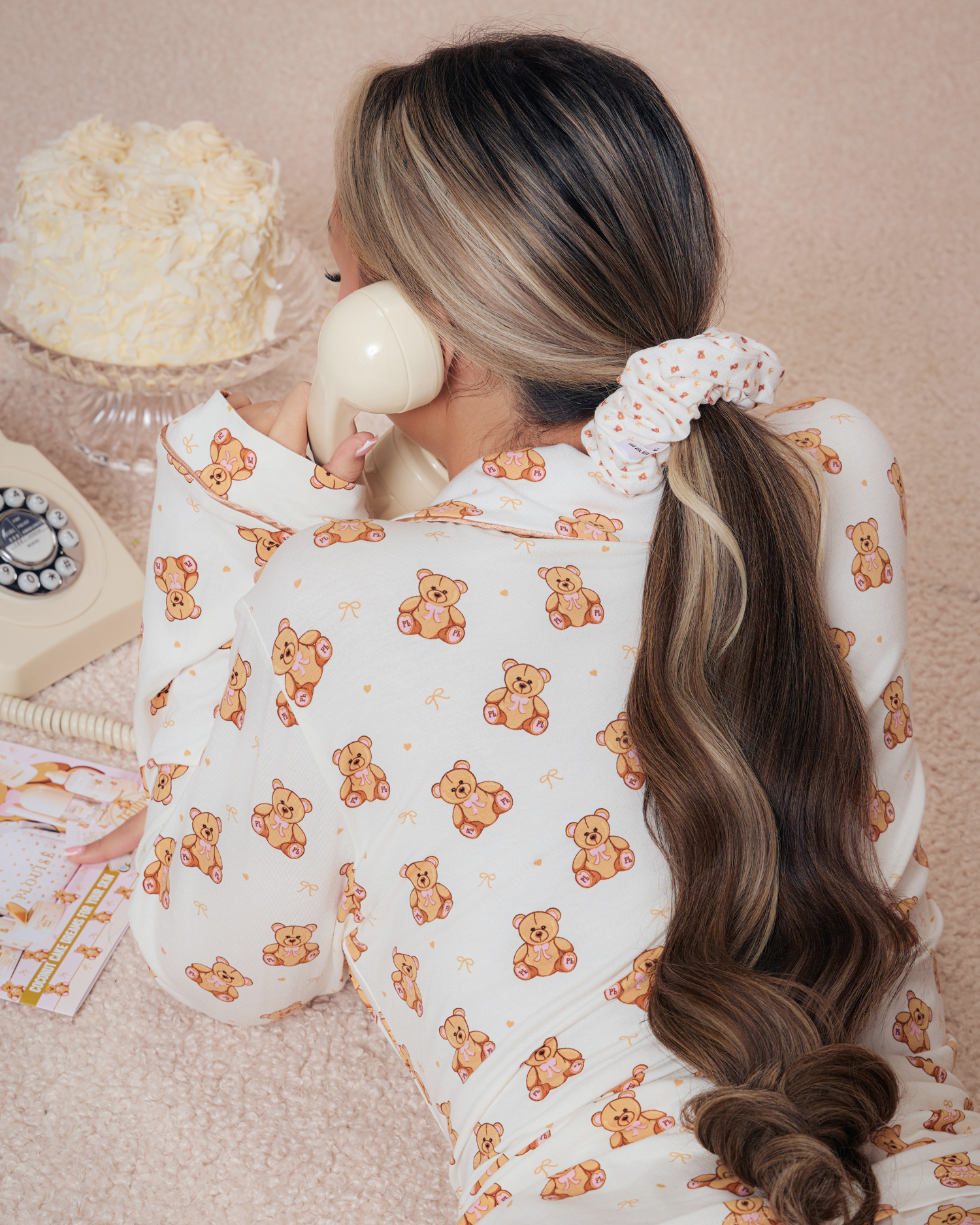 Designed to pair perfectly with the Teddy Collection, this adorable 3-piece scrunchie set features a mix of teddy bear prints on a soft, comfortable fabric that feels gentle on your hair. Each pack includes: