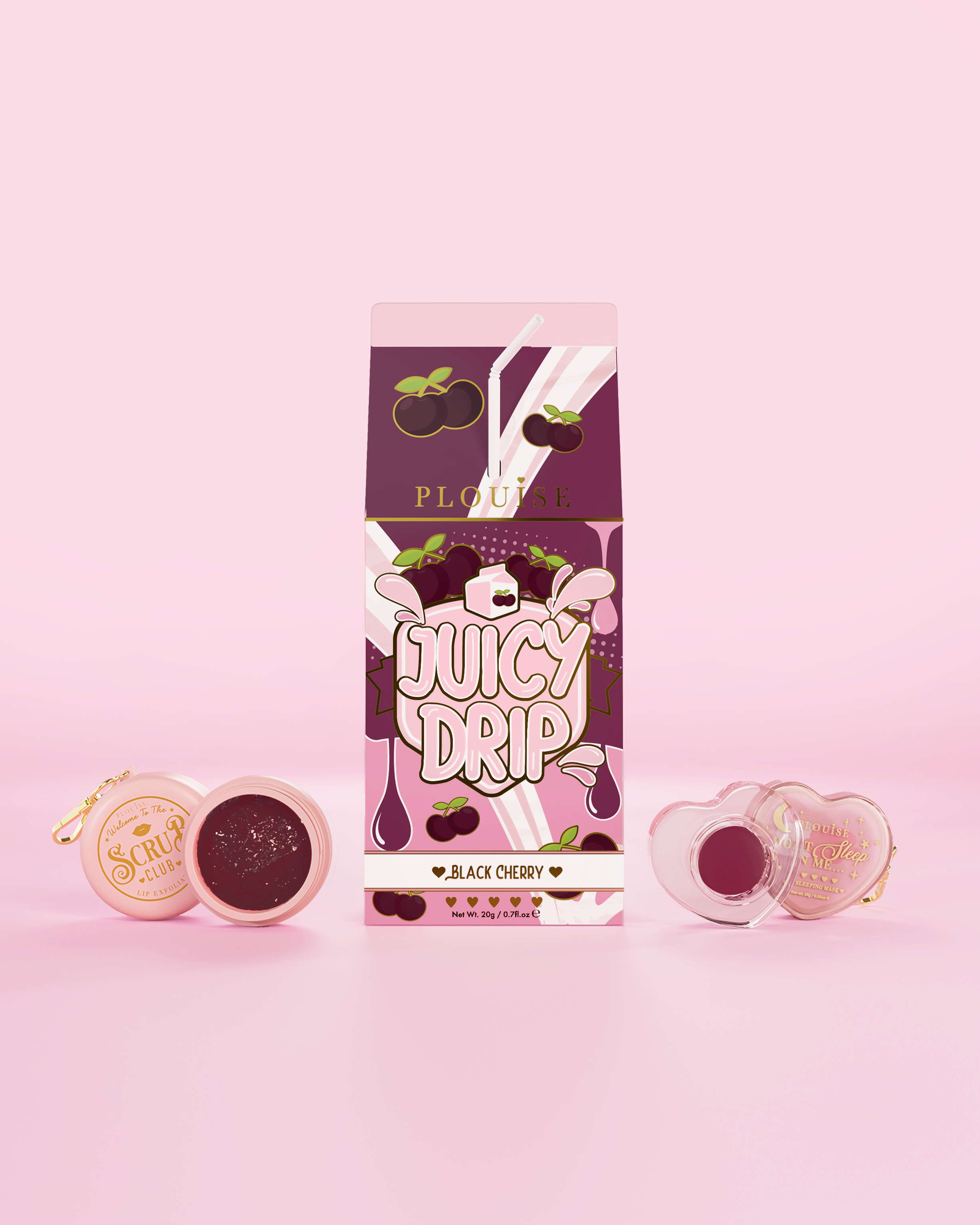- P.Louise Juicy 滴水唇膜和磨砂膏二合一 – 黑樱桃